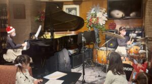 レッスンを担当する講師は、ピアノ・エレクトーン指導も行っているため、毎回グランドピアノとドラムによる生演奏でのアンサンブルを体験できます。